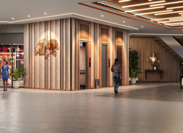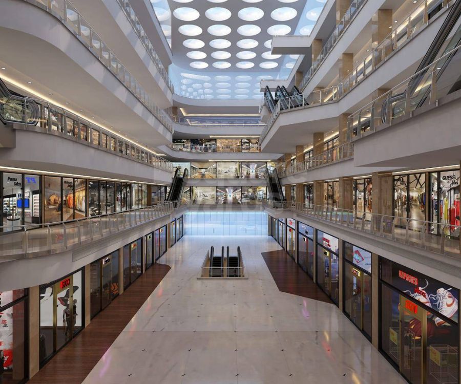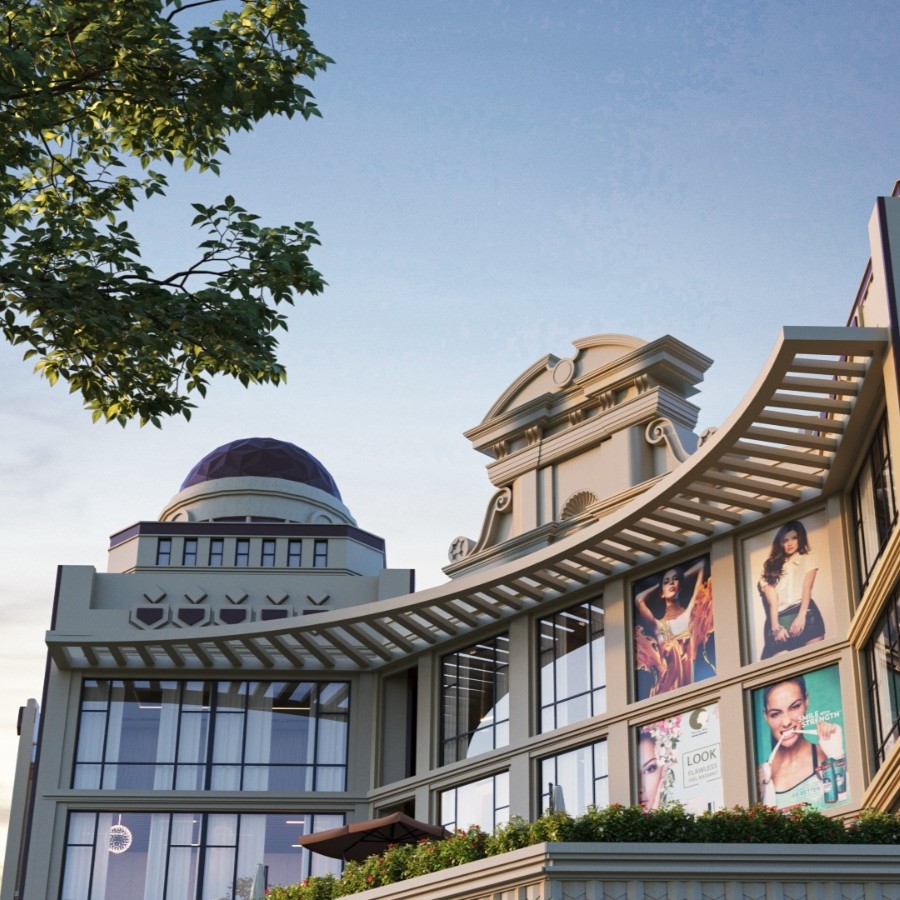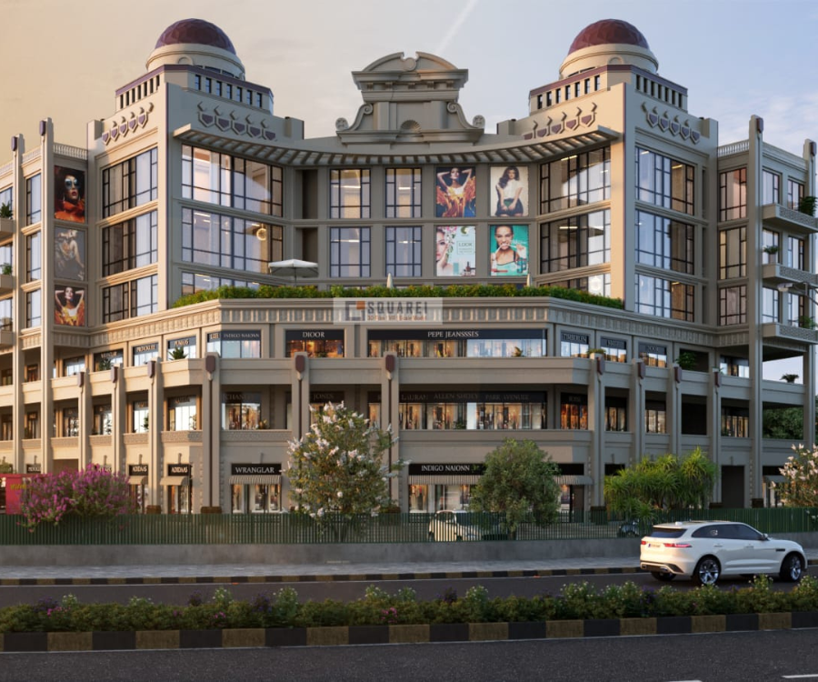 Retail spaces dominate the ground, first, and second floors, while the third floor is reserved for a vibrant food court and the fourth floor for premium studio apartments and service apartments.